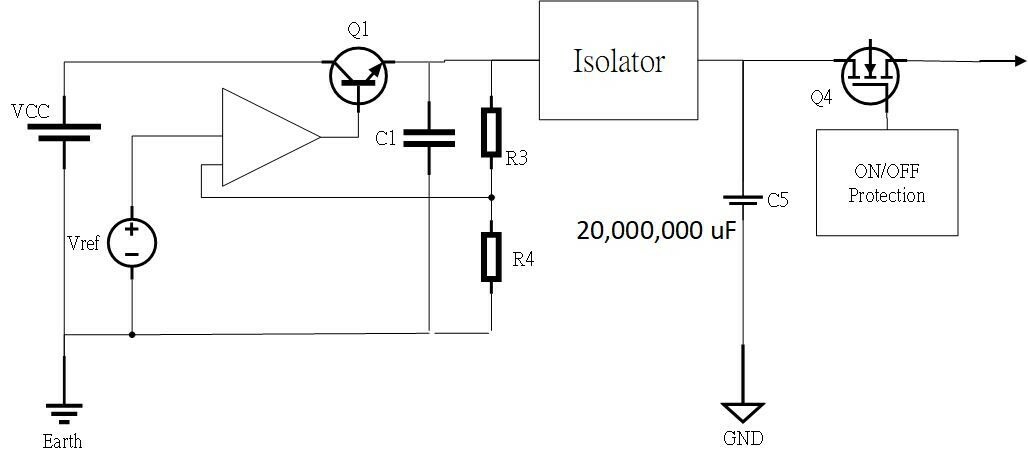 Whatsoever talking about low noise audio application, linear regulator is of no doubt the top performer. After inspecting all the topologies, we found the traditional system is inevitably limited by response time and uneven output impedance due to feedback mechanism. Instead, our system is designed to avoid the influence of feedback while a linear regulator is there to charge the output power reservoir constantly. An isolator block is located between regulator and power reservoir to isolate feedback loop from loading and its dynamics purely depends on the power reservoir that is 20x106uF equivalent to 500 times of general power amplifier capacitance. Although with huge power reservoir, it does not require excessive charging time like rechargeable lithium cells and the capacitance has almost no life cycle limit as long as we take care of its voltage tolerance.