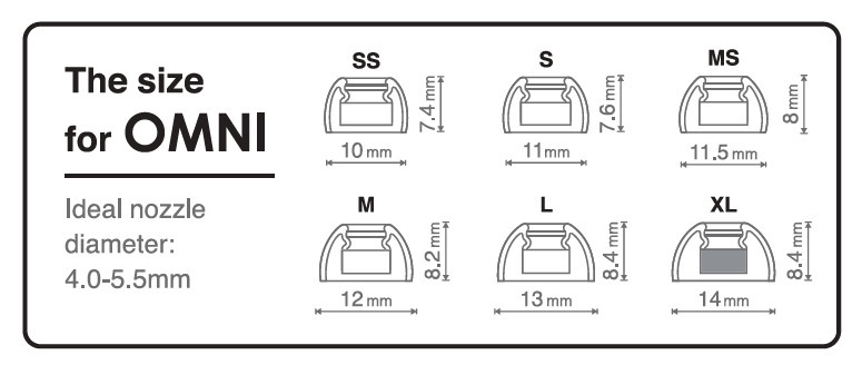 ✨OMNI全系列六種尺寸可供選擇(XL/L/M/MS/S/SS),每盒內含1對耳塞